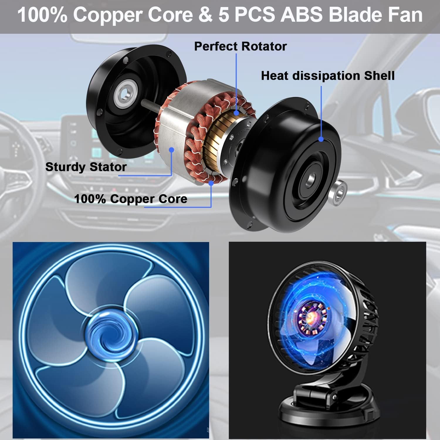 Diseño de un cabezal: ventilador de refrigeración de un cabezal, puede girar 360 grados horizontal y verticalmente, y el ángulo se puede ajustar libremente, puede aumentar la circulación de aire de todo el vehículo, todo el vehículo.